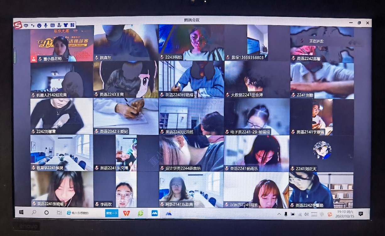 10月15日,2022年“中国教育电视台·外研社杯”职场英语挑战赛写作大赛校内初赛顺利举行,本次初赛以线上模式开展,采用腾讯会议进行线上监考。154名参赛同学被安排在6个云会场,来自艺术与设计学院的刘雨、马晓恩和黄雯一同学脱颖而出,获得校级一等奖,并代表我校参加吉林省复赛。