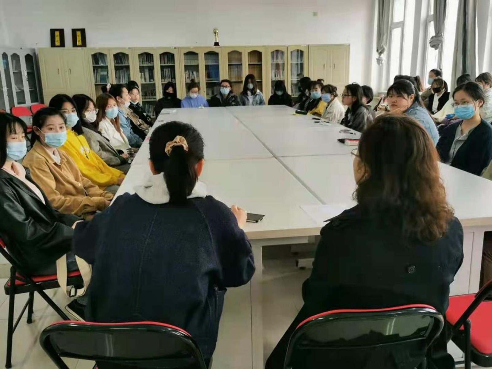 为进一步推进我院2021届毕业生就业工作,帮助目前尚未就业的学生更充分、更高质量就业。外语学院于4月24日在新实验楼627举办2021届毕业生就业工作座谈会。副院长赵文博、副书记杨德成、分团委书记徐珊珊老师以及17级未就业学生参加座谈。