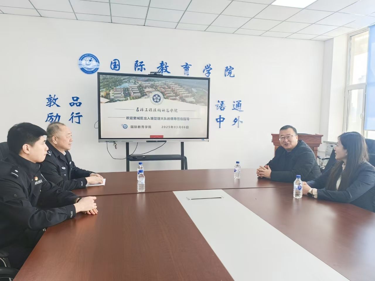 2025年3月6日,长春市宽城区出入境管理局大队长李文革与警官郭书朋一行莅临我校,对在校留学生进行了慰问,并对他们的学习与生活状况进行了深入了解。此次访问不仅体现了宽城区出入境管理局对留学生群体的关心,也为进一步加强留学生管理工作注入了新的动力。